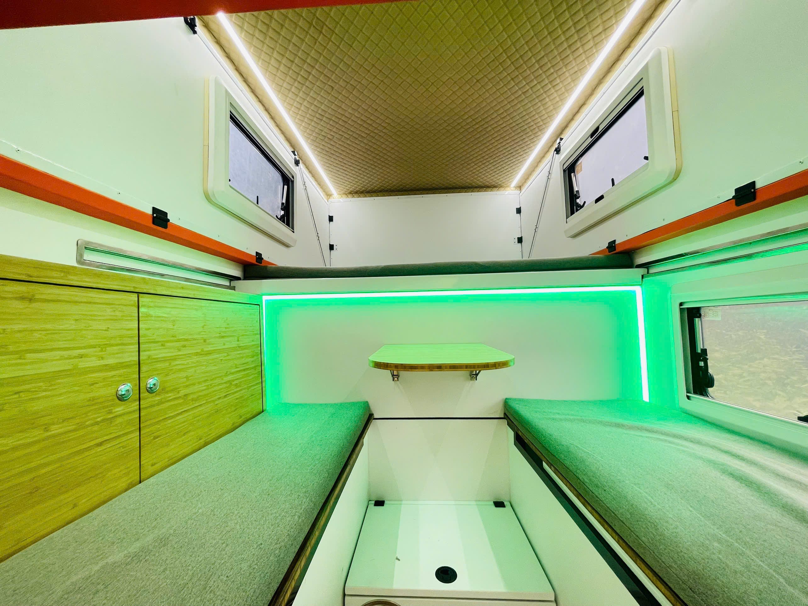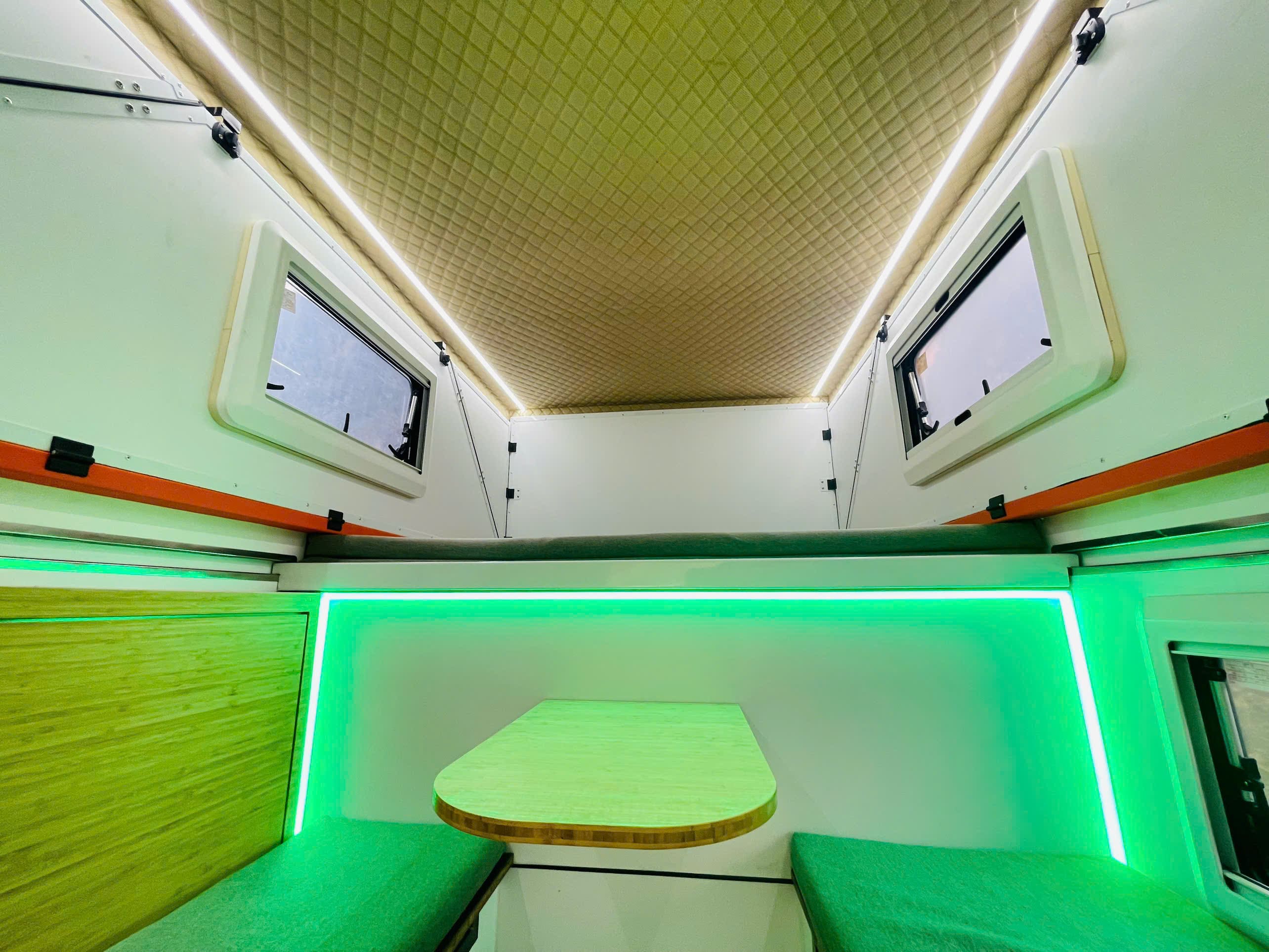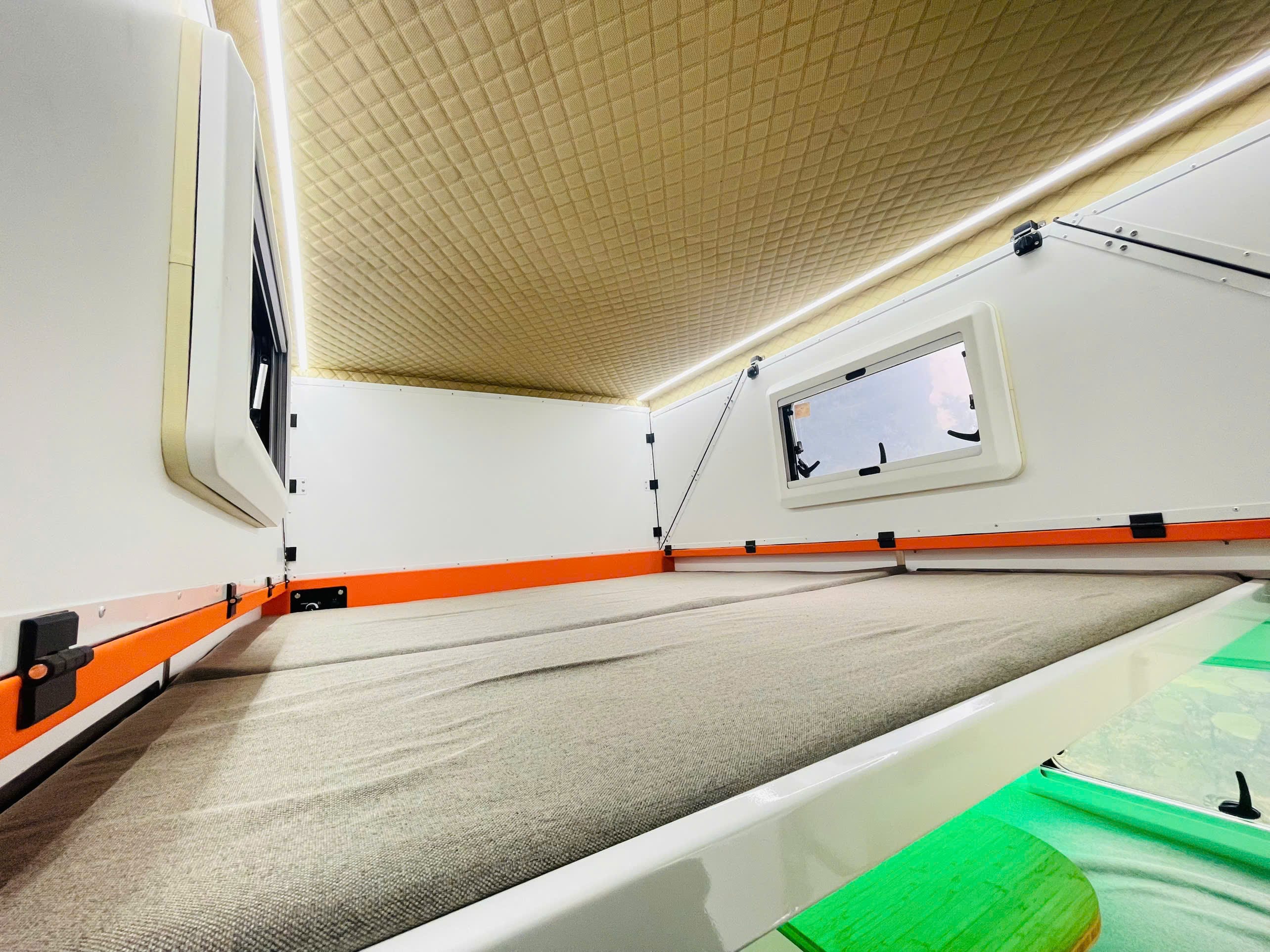 - Mẫu nhà đi động bản vách cứng này lắp được cho tất cả các dòng bán tải, có 4 chân tự đứng, liên kết với thùng xe bằng dây tăng nên tháo lắp nhanh và không ảnh hưởng đến kết cấu của xe.