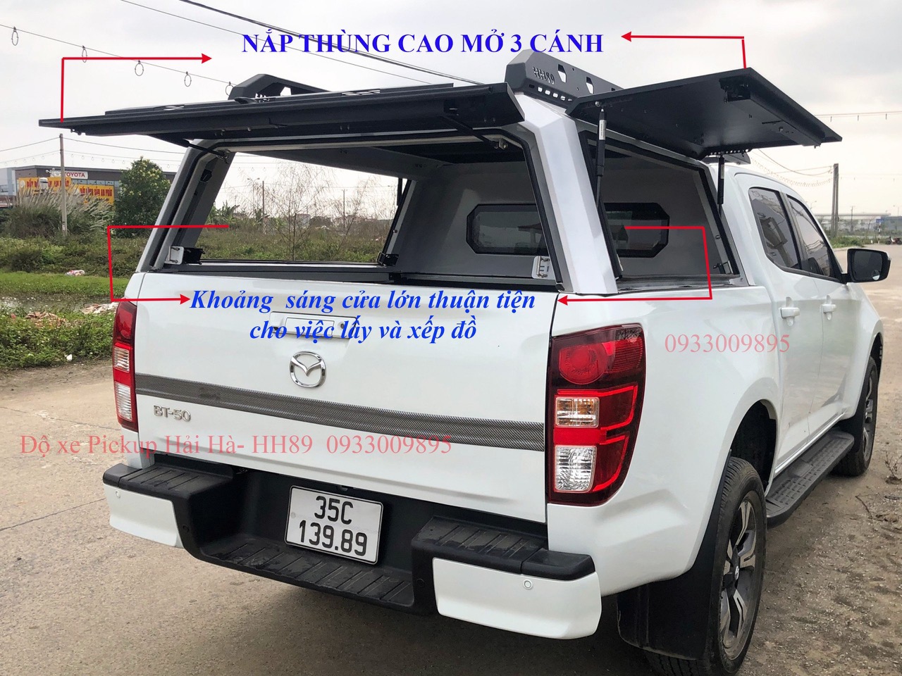 - Nắp thùng mở 3 cánh lắp chuẩn cho các dòng xe: Ranger ( 2012-2023), Triton ( 2015+), Colorado, Dmax, Navara, Hilux, BT50. Có 2 loại chất liệu: nhôm hoặc inox để khách lựa chọn, màu phổ thông là sơn tĩnh điện màu đen, ngoài ra chúng tôi có nhận sơn theo màu xe mà khách yêu cầu.
